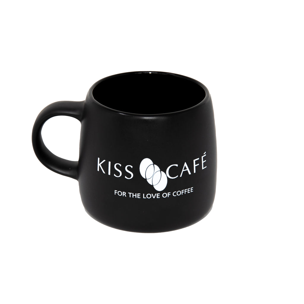 Experience coffee perfection with our black ceramic Kiss Café logo mug. Made from high-quality ceramic, this exquisite mug boasts a sleek black exterior adorned with the iconic Kiss Café logo in white on both sides. With its ergonomic handle and generous capacity, it's the perfect companion for the everyday coffee aficionado.